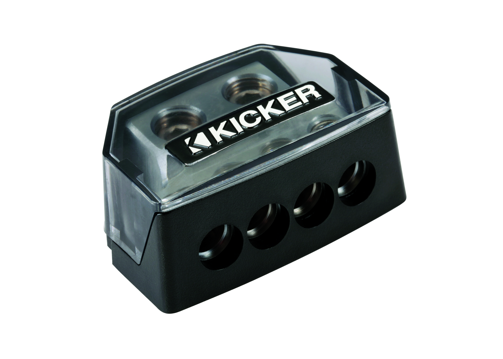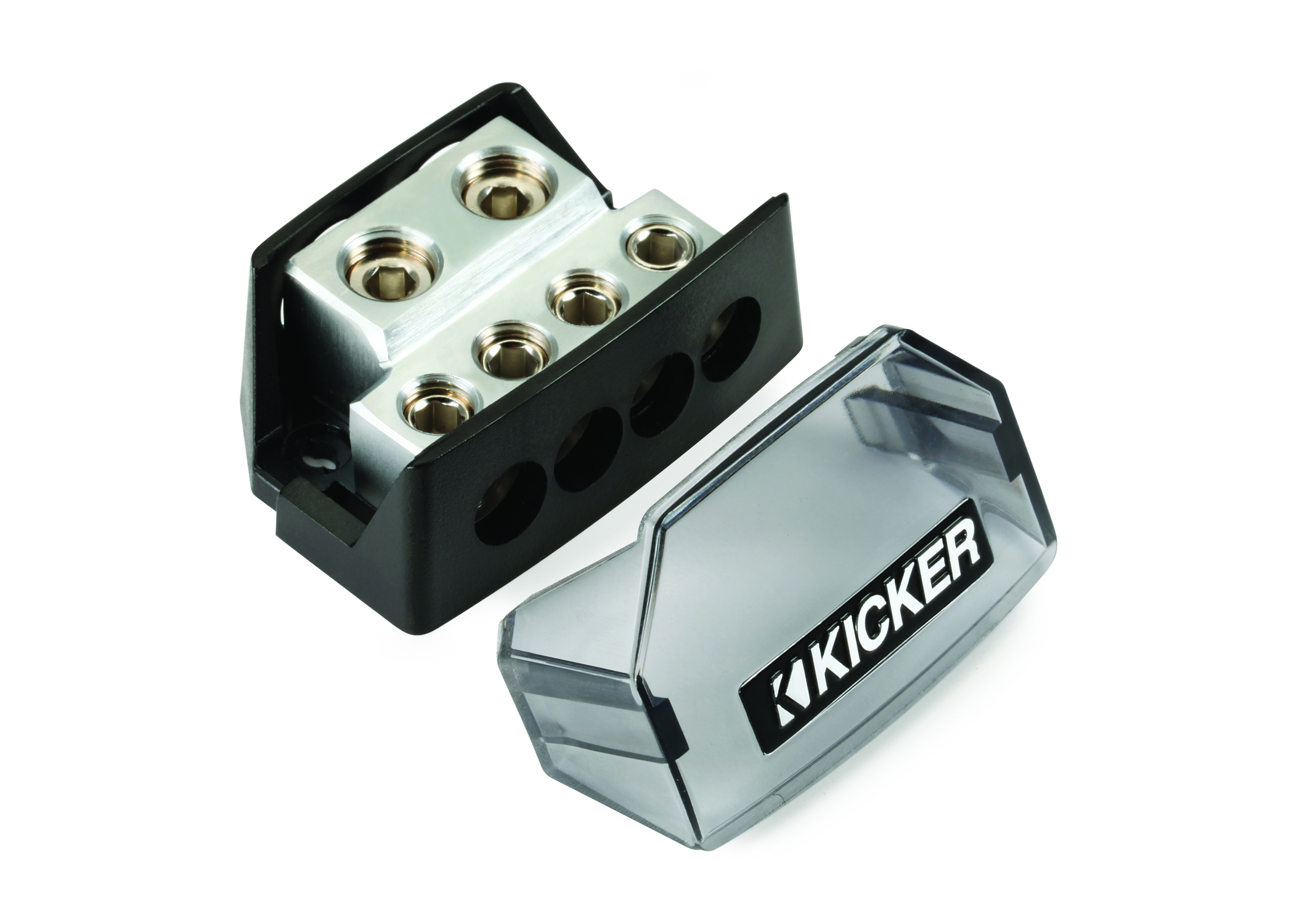 The KICKER® DB4 distribution block uses 1/0 to 8 Gauge wire.