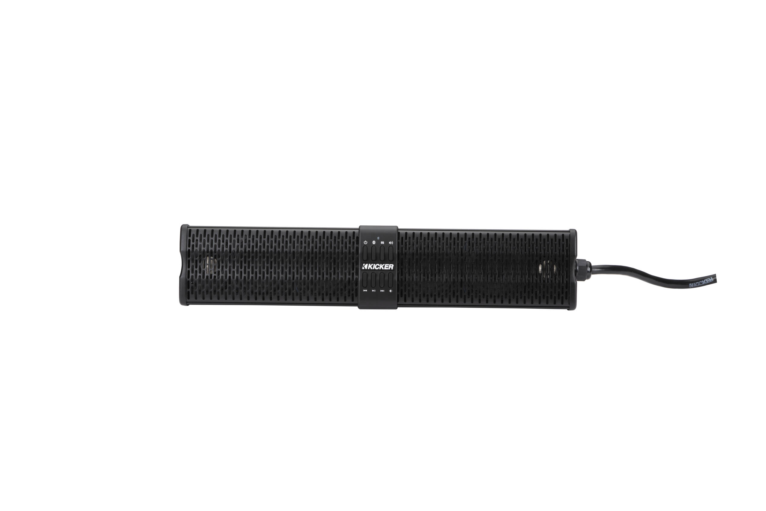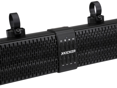 A completely self-enclosed system, KICKER PowerBars do not require a head unit. Connect sources wirelessly via Bluetooth® or a full-range AUX stereo input, then control it all with the included steering wheel-mounted wireless remote. Four DSP-controlled EQ presets are easily accessible via oversized buttons in the center of the PowerBar.